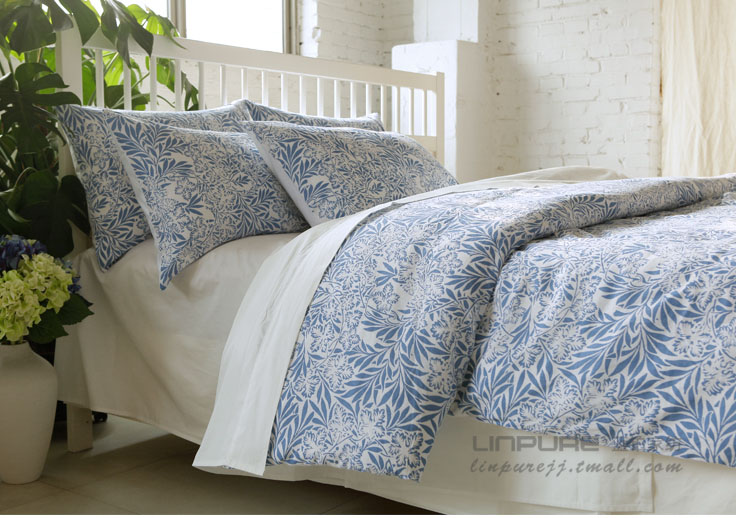 綠意盎然藍(lán)色床品四件套