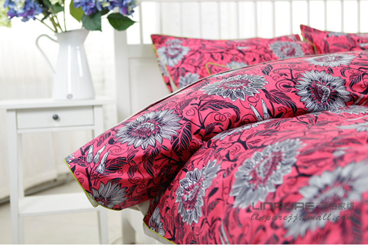 玫紅滾邊全棉床品四件套