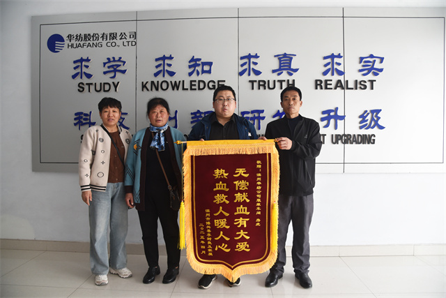 4月8日,服裝車間員工房虎收到了一面飽含深情的錦旗,上面寫著“無償獻(xiàn)血有大愛,熱血救人暖人心”。這面錦旗不僅是對(duì)房虎長期堅(jiān)持無償獻(xiàn)血善舉的高度認(rèn)可,更彰顯了華紡人熱心公益、奉獻(xiàn)社會(huì)的精神風(fēng)貌。
